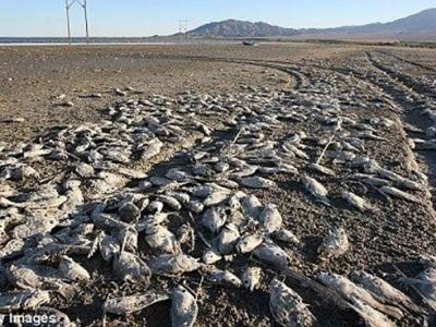 美国加州南部的沙顿海发现大量死鱼 据悉,沙顿海实际上是一个咸水湖,因此出现...