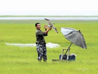 金伟国在东滩环志捕鸟。(资料照片) 清晨5时,天蒙蒙亮。一串清脆婉转的鸟鸣,...