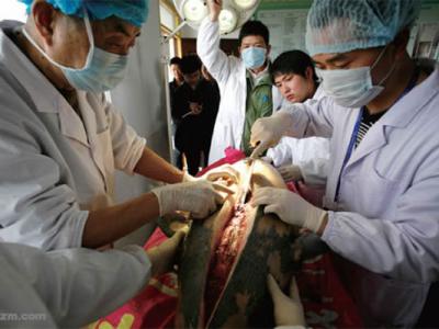 2012年4月9日,岳阳市江豚保护协会志愿者谢拥军等在解剖江豚,以查明死因。 "从...