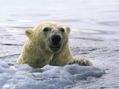全球变暖让北极熊成为游泳马拉松运动员 由于全球变暖,快速减少的海上浮冰让北极...