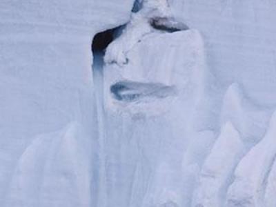 挪威冰川呈现哭脸 形成哭脸的冰帽每年最大萎缩160英尺(约合49米) 由伦敦地质...