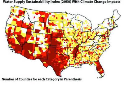 到2050年美国1/3的县面临水资源短缺 一项新的分析表明,到2050年,气候变化将使...