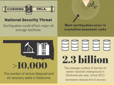 这一信息图显示了美国俄克拉荷马州诱发地震活动的因与果。(神...