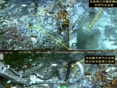 科学家首次发现“可燃冰”附着在处于喷发状态的冷泉...
