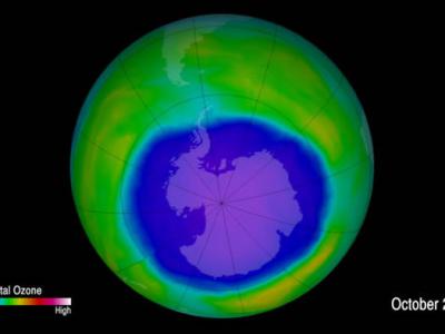 南极洲上空的臭氧层破洞正逐渐缩小。 臭氧层出现破洞会影响人类的健康。 图...