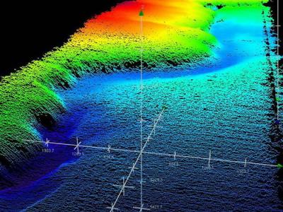 最新3D地图绘制了太平洋大塔穆火山部分特征结构,其中包括较长的峭壁。 (神秘的...