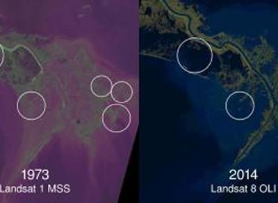由Landsat(SGS/NASA Landsat Program)所观察到的密西西比河三角洲的为期40年的...