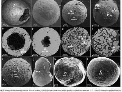 煤山地层中的微球粒 煤山D剖面土壤中的微球粒 湖北黄石土壤中微球粒 (神...