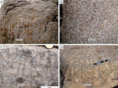 图1. 华北台地广泛发育的典型的芙蓉统“迷宫状”海绵—微生物礁近照特征 图2....