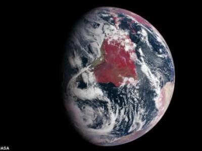 美国宇航局改变了这种图片的颜色,用来反映植物的生长情况,因为与红光或者绿光相...