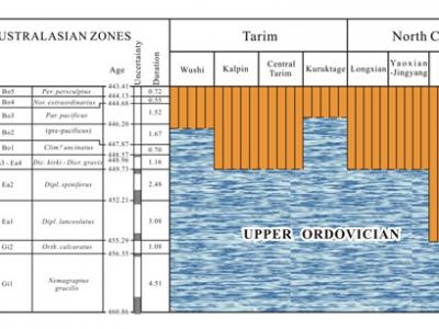 华北和塔里木奥陶系上部地层对比图 华北、华南和塔里木奥陶纪全球古地理位置图...