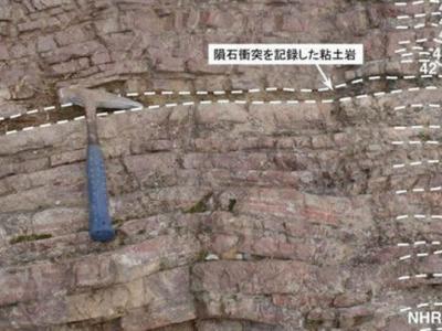 研究团队在日本岐阜县坂祝町发现的陨石痕迹 日本大分县津久见市的地层 据环球...