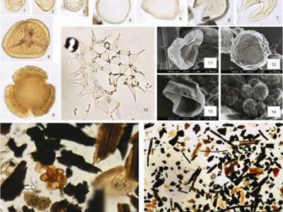 冲绳海槽沉积物冰期阶段近源搬运的主要花粉类型及丰富的植物碎屑和碳屑显微及扫描...