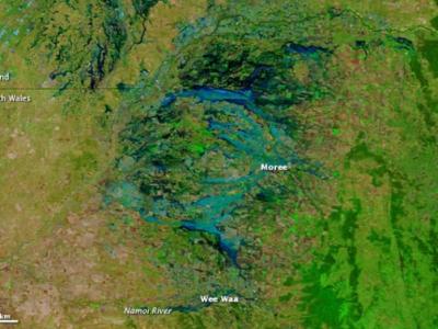 2011年11月下旬,东澳大利亚一处通常干燥的地区被洪水浸没的场景 据EurekAlert!...