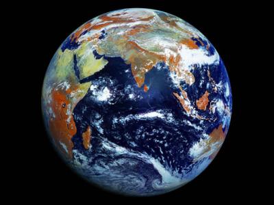 俄罗斯Elektro-L No.1气象卫星扫描了可见光和红外光。结合这些图片产生了这张美丽...