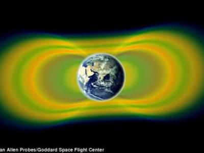 艺术概念图,展示了范艾伦辐射带。范艾伦辐射带是一个甜甜圈形区域,含有“致命电...