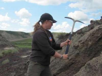 Annie Quinney正在挖掘7100万年前的古土壤 现今加拿大阿尔伯塔德兰赫勒市周围的...