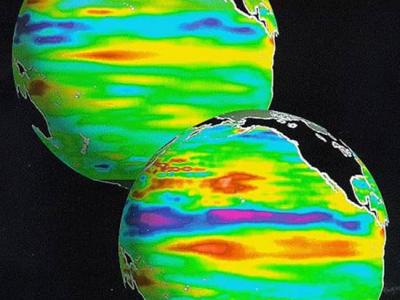 卫星数据表明,厄尔尼诺(红色和深蓝色区域)回来了 封舱!作为一种破坏性的气候...