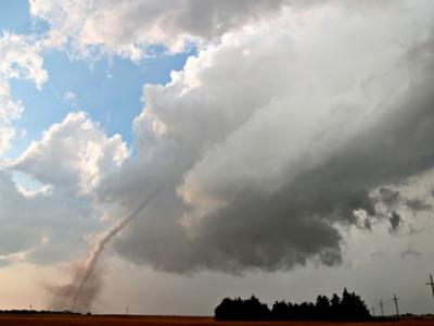 大雨滴能够引发龙卷风,图为2004年5月发生在美国堪萨斯州的一次龙卷风。 研究人...