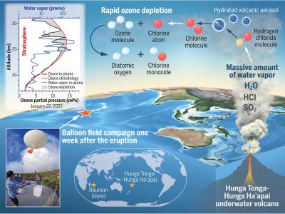 火山爆发引发的快速臭氧消耗。HT爆发后,留尼汪岛进行了气球运动(左图)。羽流动力学...