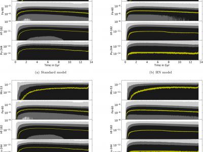 模拟体积中的SLR密度,单位为克/立方厘米,其中每个时间步长的分布代表(40)3个子单...
