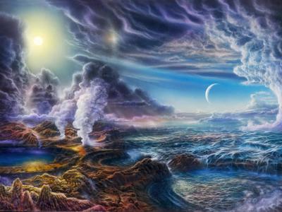 艺术表现恒星北落师门环绕盘中两个行星相撞的过程。图片来源:uux.cn托马斯·穆勒(...