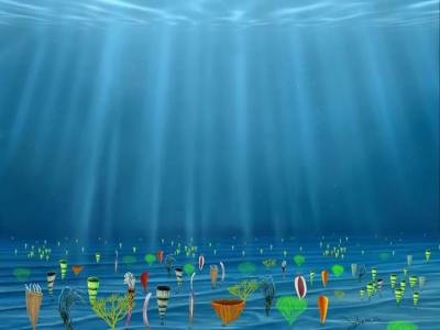 约6亿年前的远古海洋复原图。中科院南京地质古生物研究所供图(神秘的地球uux.cn报...
