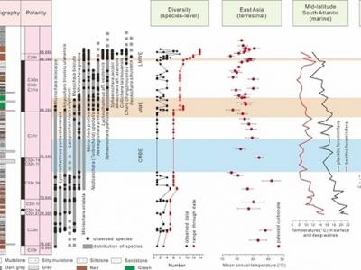 松辽盆地轮藻植物群分异度变化与全球气候变化对比图(其中,钙质结核团簇同位素温度...