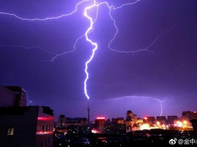 2017年7月7日击中中央广播电视塔的闪电(拍摄者:钟魁润 《中国科学》杂志社)(神...