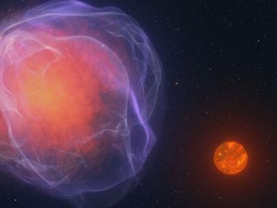 一张模拟图像显示了一颗低质量恒星即将从白矮星的超新星爆炸中被踢出的时刻(图片来...