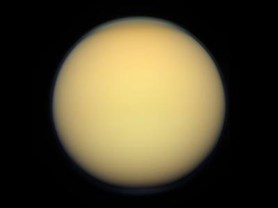 使用2011年12月16日卡西尼号拍摄的经过校准的红色、绿色和蓝色过滤的泰坦图像进行处...