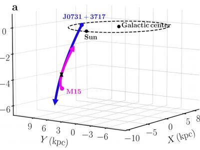 J0731+3717和梅西耶15球状星团向后轨道的三维表示。资料来源:uux.cn/Huang et al....