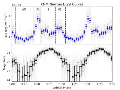 J2215的二元X射线和光学轨道光曲线。资料来源:uux.cn/Sullivan和Romani,2024年。...