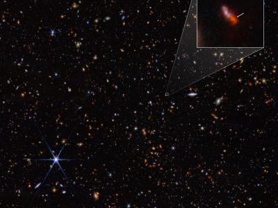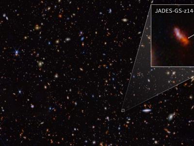 JADES-GS-z14-0是JWST拍摄的NIRCam图像中人类见过的最早、最遥远的星系(图片来源:...