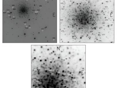 NGC 2419区域内变星的识别图。每个图像的近似大小分别为6.9×6.9、2.5×2.5和1.6×...
