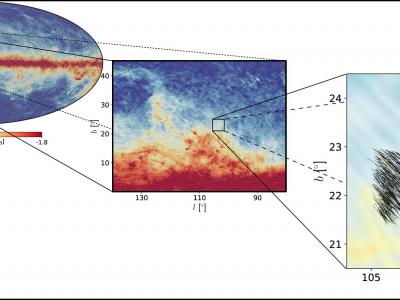 测量区域的天空位置约为4平方度。左:尘埃发射的全天空地图中:向被测区域放大地图...