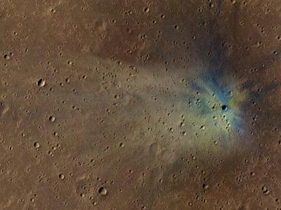 由美国国家航空航天局火星勘测轨道飞行器拍摄的火星年轻的科林托陨石坑被数百个在同...