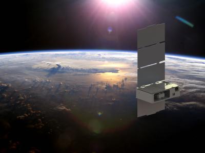 艺术家对在轨可爱任务的构想。自2021年9月以来,CUTE一直在560公里的太阳同步轨道上...