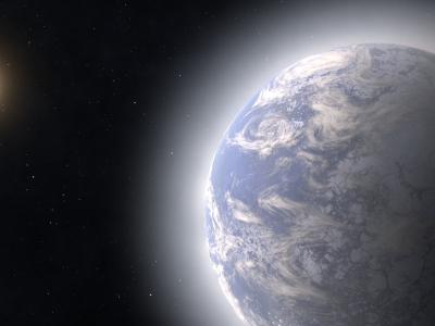 一颗系外行星的艺术表现,其表面的水冰在接近行星系统的中心恒星时不断蒸发并形成大...