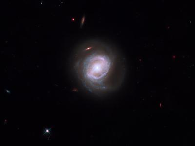在这张哈勃太空望远镜拍摄的照片中,星系AM 1054-325受到邻近星系的引力作用,从正...