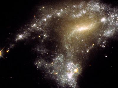 哈勃在星系碰撞中探测到天体“珍珠链”星团