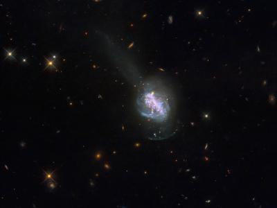 哈勃太空望远镜拍摄的螺旋星系UGC 11105由可见光和紫外光组成。图片:uux.cn/欧空局...