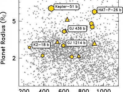 这项工作的样本覆盖了已知的凌日行星。六边形表明我们样本中的行星也在第二周期被J...