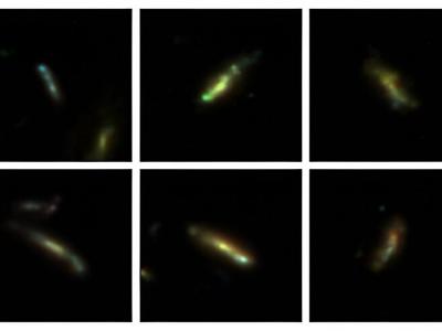 研究人员认为是细长的椭圆形(即面包棒形)星系的图像,由詹姆斯·韦伯太空望远镜拍...