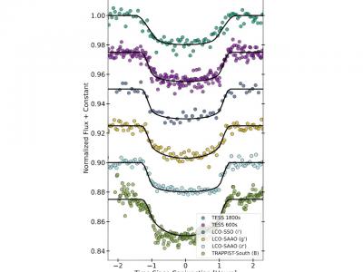 TOI-2107:未绑定的TESS和后续地面凌日,相位折叠并显示与任意归一化通量偏移的最佳...
