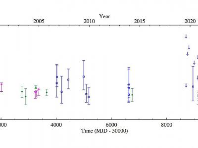 NGC 2403 XMM4的二十年光变曲线是从Swift(蓝盒子)、Chandra(洋红色钻石)、XMM-Newt...