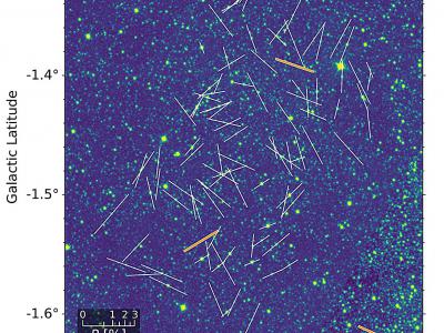 叠加在这张银河系人马座臂图像上的白线显示了光的偏振或方向。这与局部磁场线的方向...