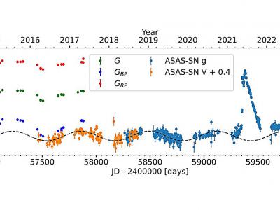 TCP J1822的光变曲线。鸣谢:uux.cn/皇家天文学会月报(2023)。DOI: 10.1093/mnras/s...