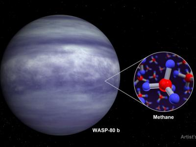 一位艺术家对温暖的系外行星WASP-80 b的渲染,由于缺乏高空云层和美国国家航空航天...
