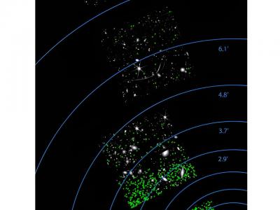 F200W过滤器中蓝鸟数据的镶嵌图。Ark 227在右下角清晰可见。通过分辨恒星进行表面亮...